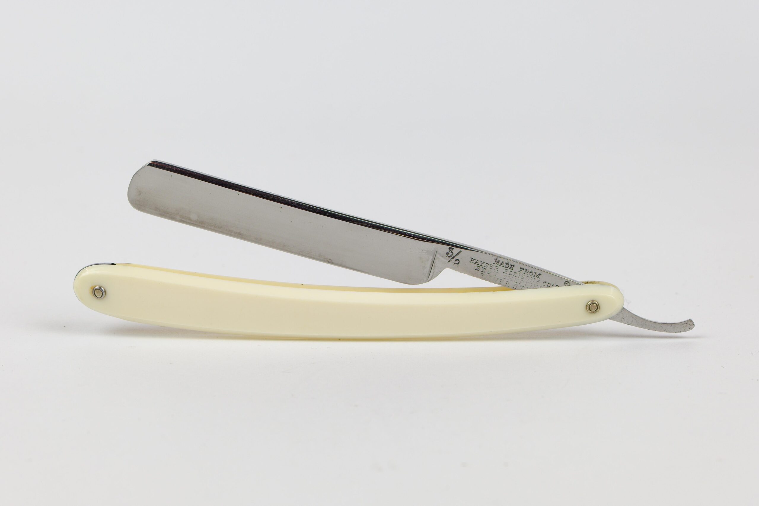 Diese Stähle wurden früher speziell für Rasiermesser hergestellt und dort verwendet. Die Schärfe und Schnitthaltigkeit ist unerreicht. Der Griff besteht aus einem weissen Kunststoffmaterial.